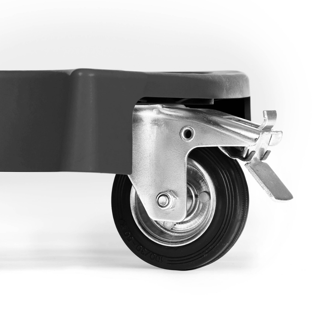 The Wheel Trolley® Recycled Off Road is available with and without wheel brakes. This model is delivered for workshop use in both 1 piece (one-by-one) and 4 piece boxes (four-pack).