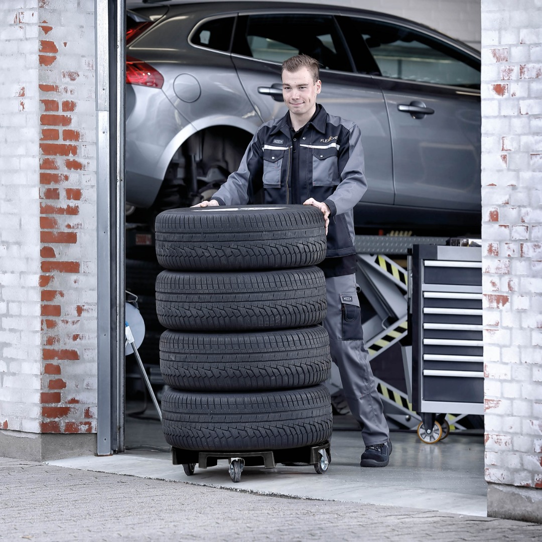 It is completely indispensable in handling and transporting medium-sized tires around the workshop.