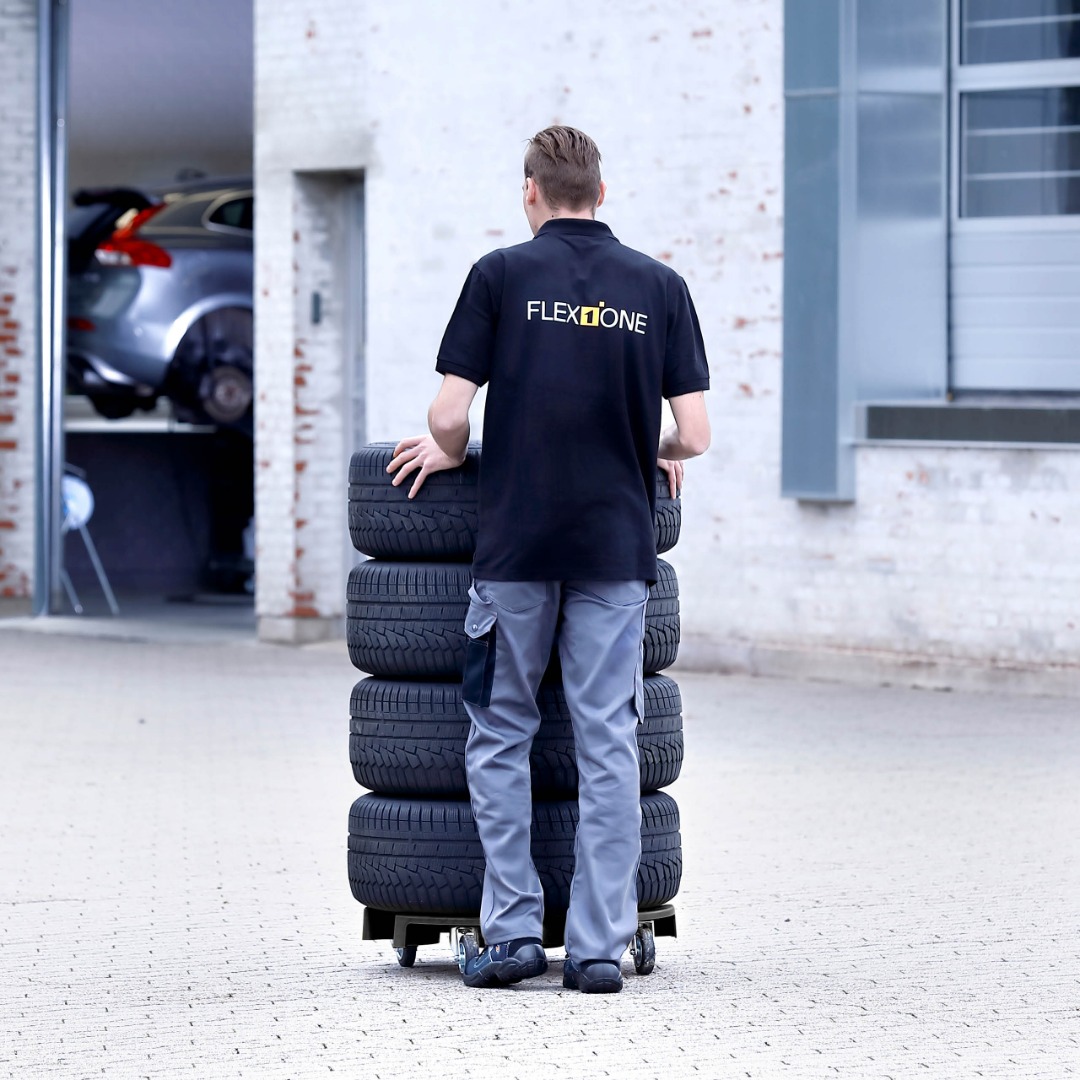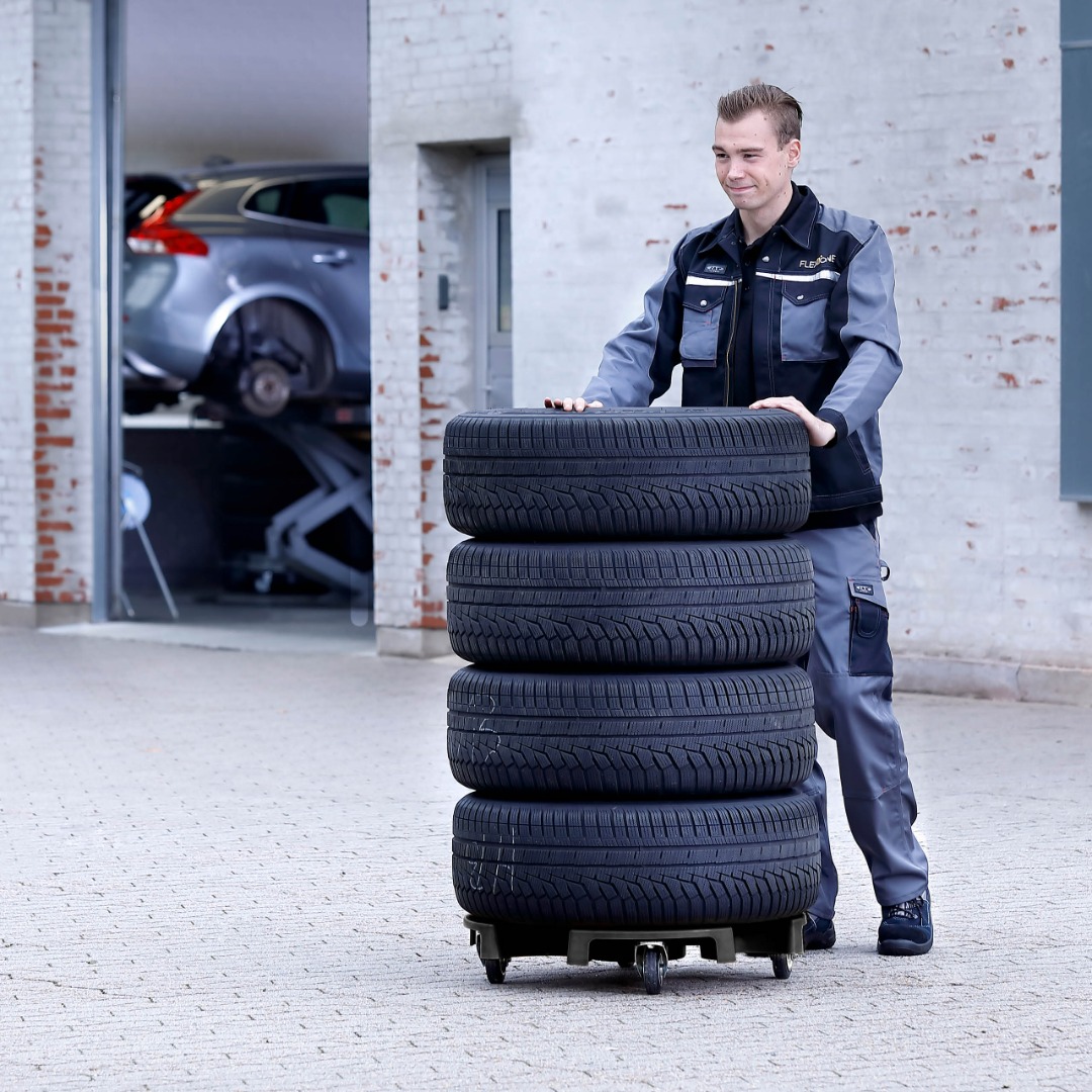 Many workshops have separated the tyre storage facilities from the workshop - and therefore have to move the wheels from inside the workshop to the tyre storage facilities.