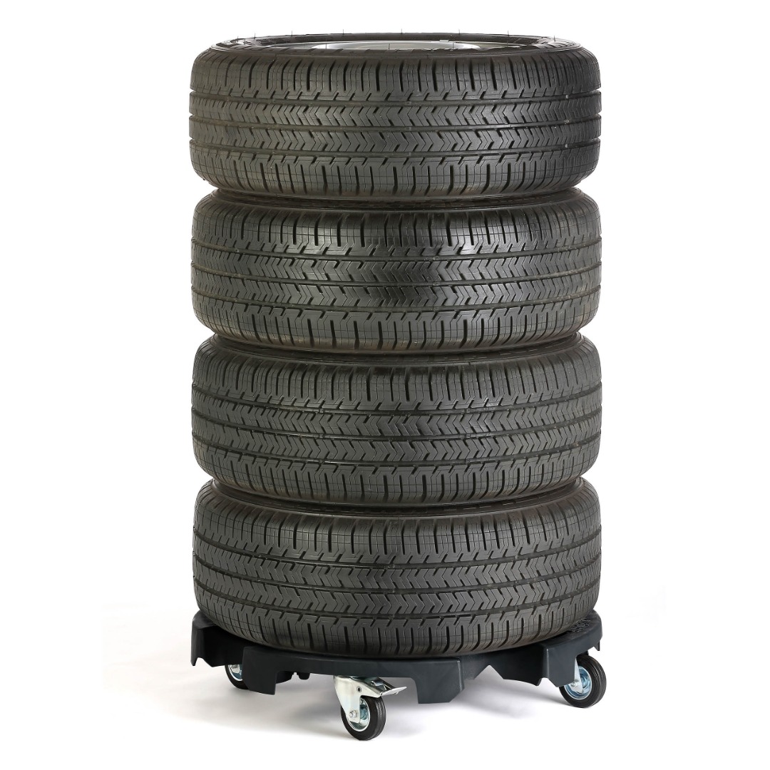 The Wheel Trolley® Recycled XL is therefore suitable for the transport of 4x4 wheels, van wheels and other large wheels, and is completely indispensable in handling and transporting large and extra-heavy tires around the workshop.