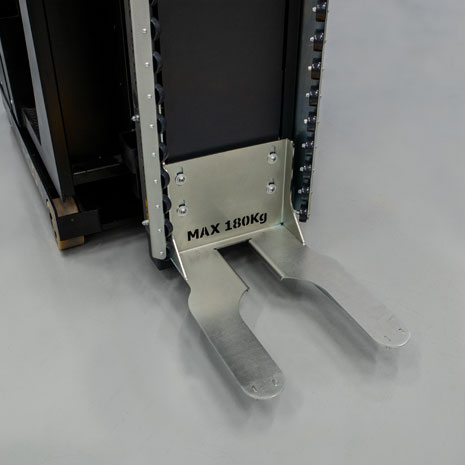 - Reduces the needed width for walkways between racks to 1.5 metres